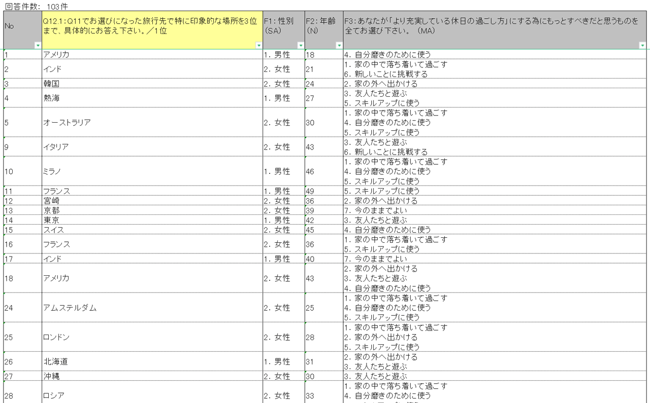 基本的な調査方法(単純集計)の表とグラフのサンプルです。